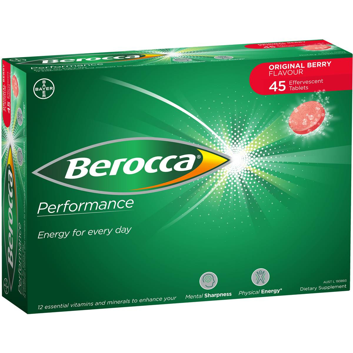 3 PACK OF Berocca Energy Vitamin Original Berry Effervescent Tablets 45 pack