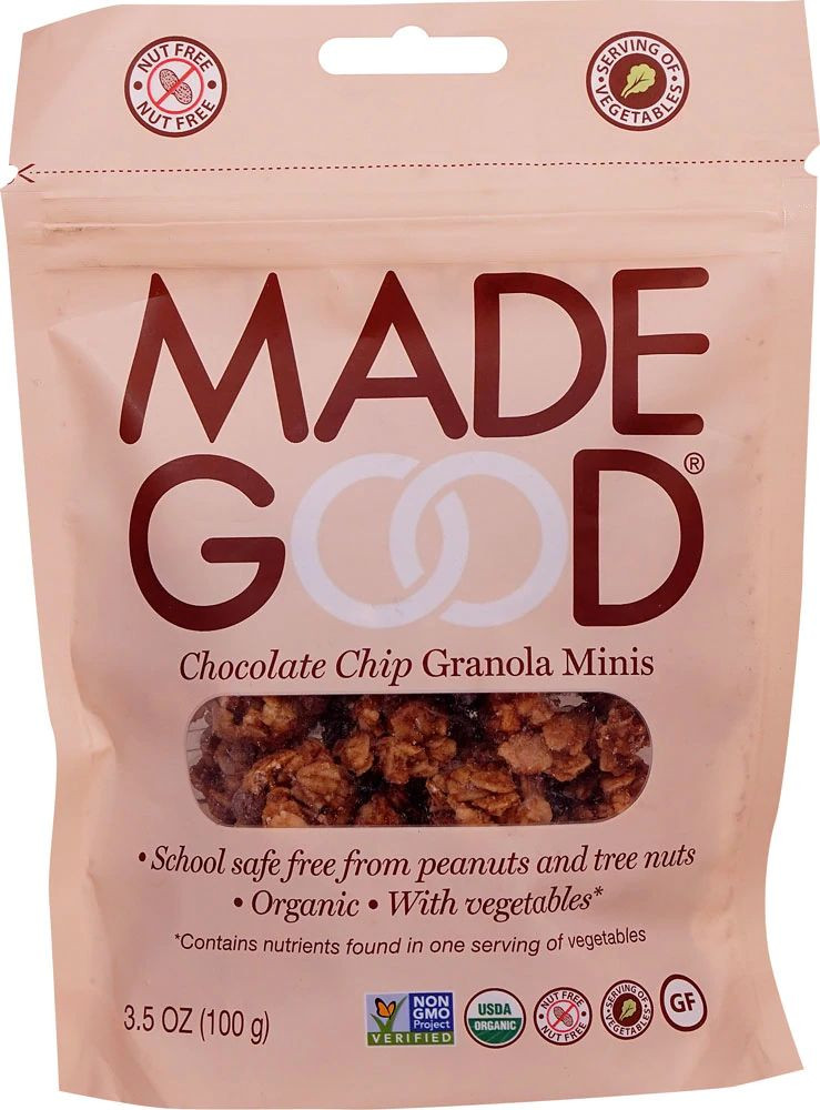 Toasted gluten free?oats and delicious chocolate chips. These granola minis?are chewy goodness and contain the nutrients in one full serving of vegetables.