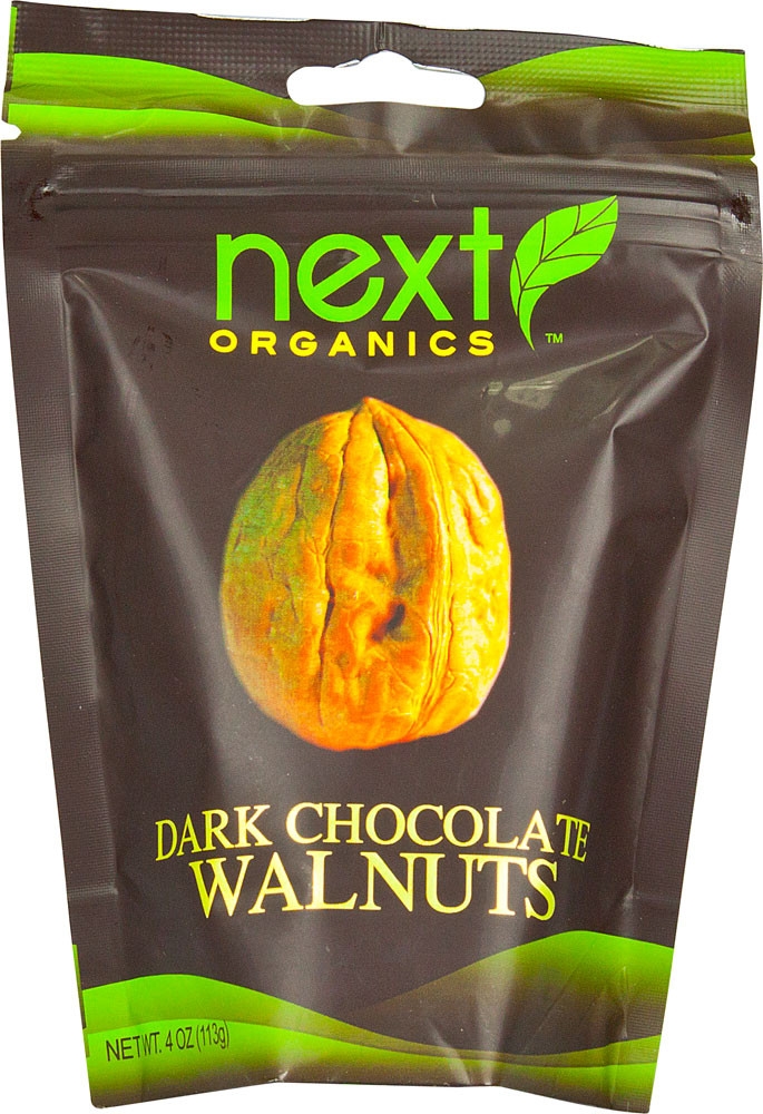 Next Organics Dark Chocolate Covered Snacks Walnuts Description