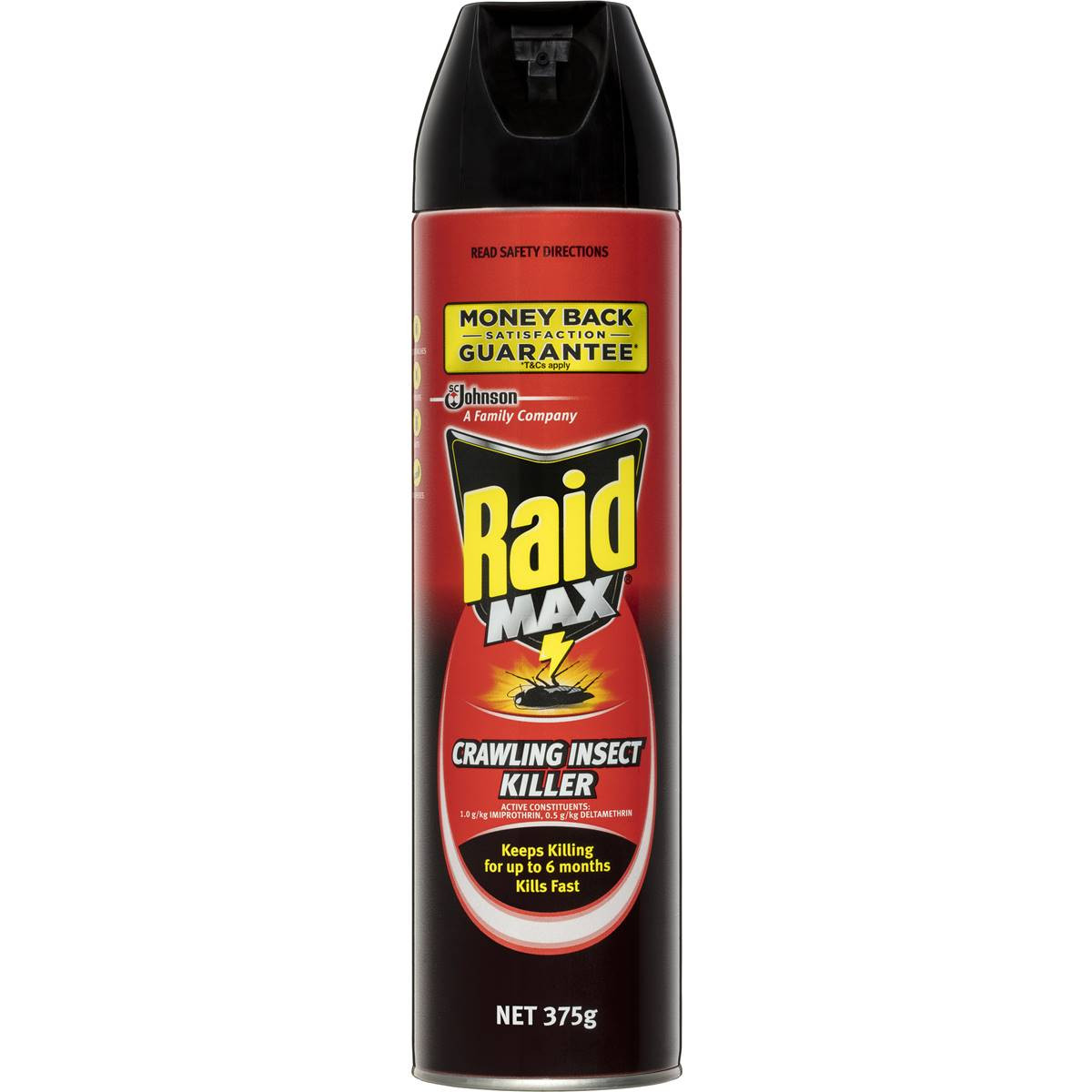 Raid Max Crawling Insect Killer 375g. Surface Spray. Keeps killing for up to 6 months. Kills fast.