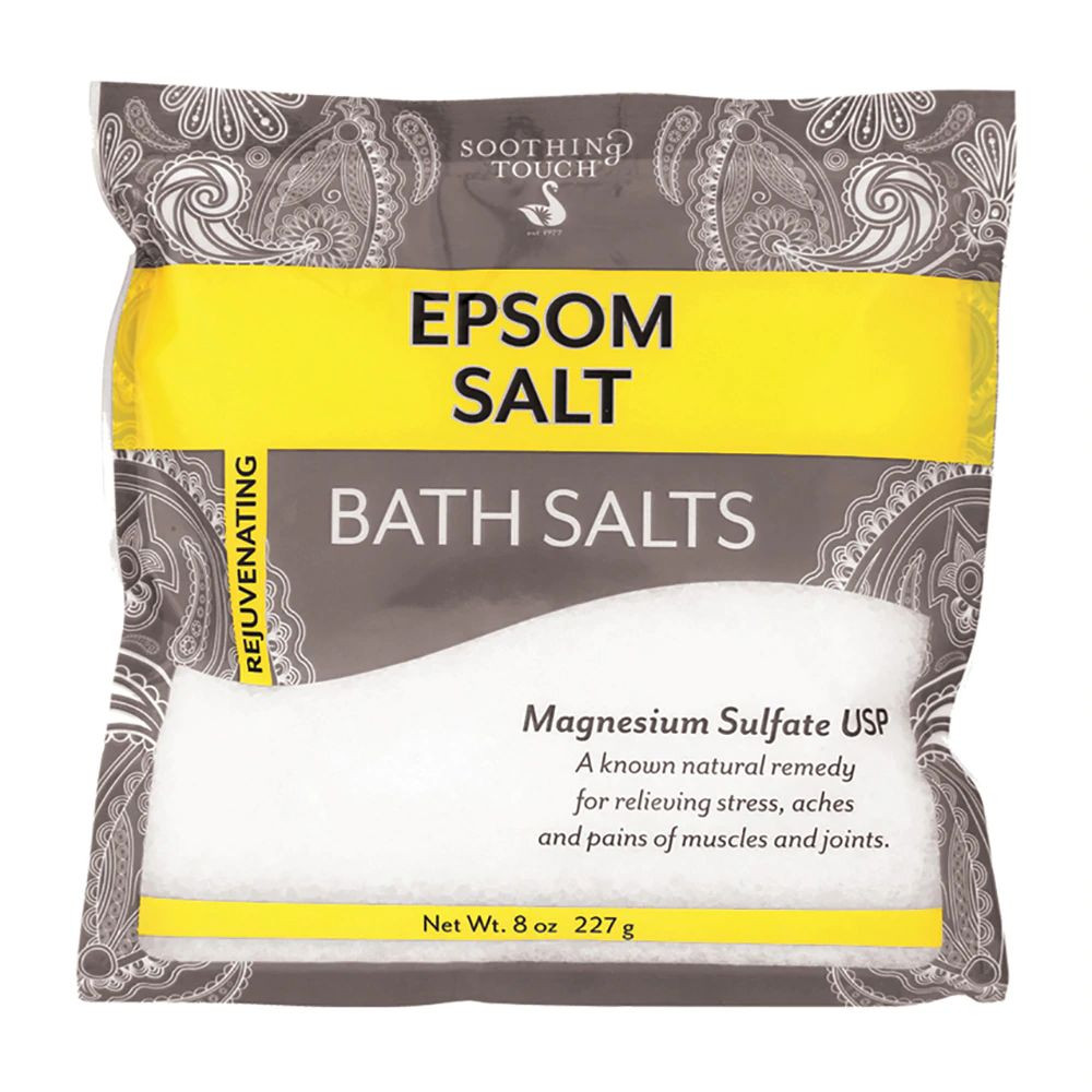 Pure Epsom salt/magnesium sulfate USP has been used for hundreds of years to soothe muscle aches and pains, tired feet and to hydrate and soften the skin.? On the skin it can act as a great rejuvenator and even an exfoliator.? For best exfoliation results on the skin, add some of our Soothing Touch Bath, Body and Massage Oil to some Epsom Salt and gently rub into the skin.? Or you can just soak in a tub and enjoy!