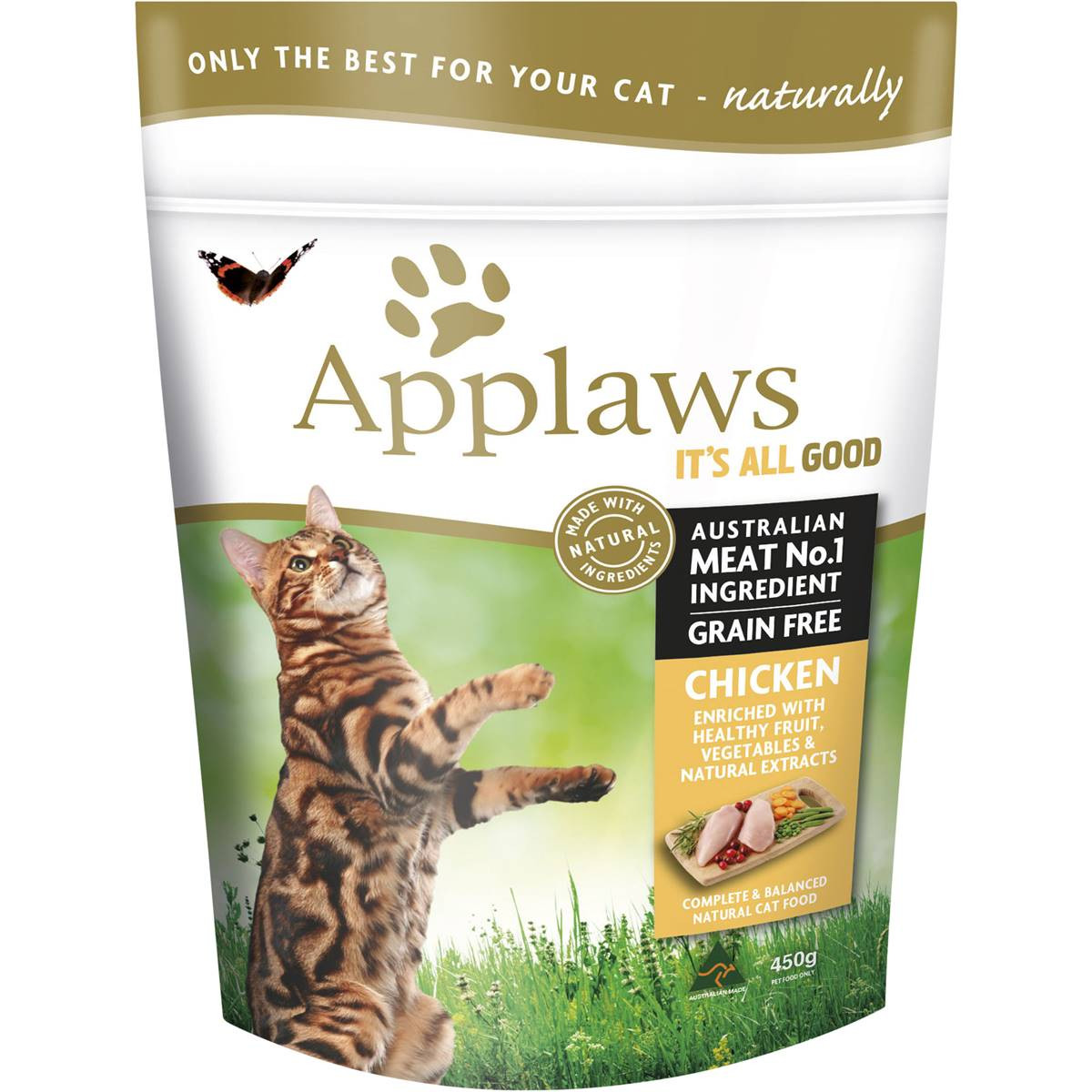 Chicken Meal (natural source of Glucosamine), Turkey Meal, Pea Starch, Tapioca Starch, Dried Chicken, Potato, Chicken Fat (preserved with mixed trocopherols and citric acid), Flaxseed (natural source of Omega 3 & 6), Fish Oil (natural source of Omega 3 & 6), Natural Chicken Flavour, Taurine, Saly, Rosemary Extract, Carrots, Sweet Potato, Cranberries, Alfalfa, Dried Kelp, Yucca, Beet Pulp, Lysine, Vitamins (A, B1, B2 , B5, B6, B12, D3, E),Biotin, Folic Acid, Niacin, Magnesium, Iron, Zinc, Manganese, Copper, Mauri Mos (Natural Prebiotic) and Calcium Propionate.