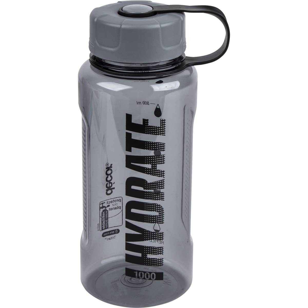 The Decor Hydrate 1000 Tritan Bottle is perfect for those that need a serious hydration hit. Made from crystal clear, odour resistant Tritan , the 1L flask bottle has a wide opening, great for adding ice or for guzzling water down quick. The bottle also features handy printed graduations that help you monitor your intake, and an attached never lose cap. Available in three colours.