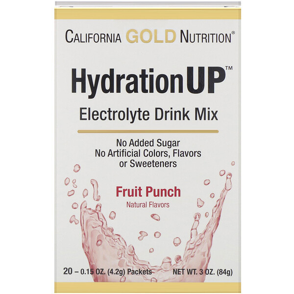 California Gold Nutrition, HydrationUP, Electrolyte Drink Mix, Fruit Punch, 20 Packets, 0.15 oz (4.2 g) Each