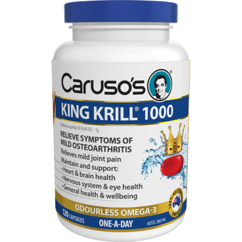 Carusos King Krill 1000 is a convenient source of Omega-3 Fatty Acids, providing 1000mg of krill oil in each capsule. Krill oil is extracted from the Antarctic krill species Euphausia superba which is a rich source of Omega-3 Fatty Acids.