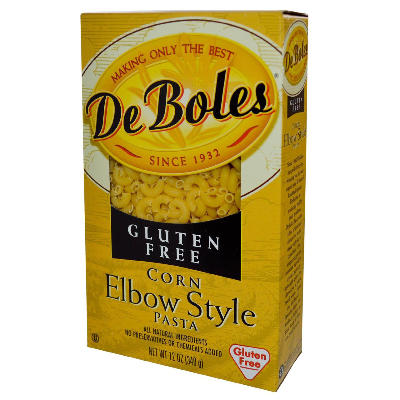 - DeBoles, Corn Elbow Style Pasta, Gluten Free, 12 oz (340 g)