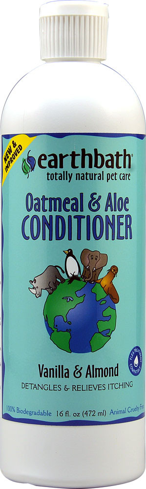 earthbath? proudly?formulated this shine enhancing Oatmeal & Aloe Conditioner with food grade extracts of Vanilla & Almond to effectively detangle, enrich, and revive your pet's coat. The addition of 3% Colloidal Oatmeal and Aloe Vera help re-moisturize and soothe skin, too. Our sumptuous Conditioner will eave your best friends coat soft and plush while bringing out is natural luster and brilliance. Used in conjunction with earthbath Totally Natural Pet Shampoos your pet's coat will be plush and smell naturally fresh. Will not wash off topical flea applications safe for all animals over 6 weeks.