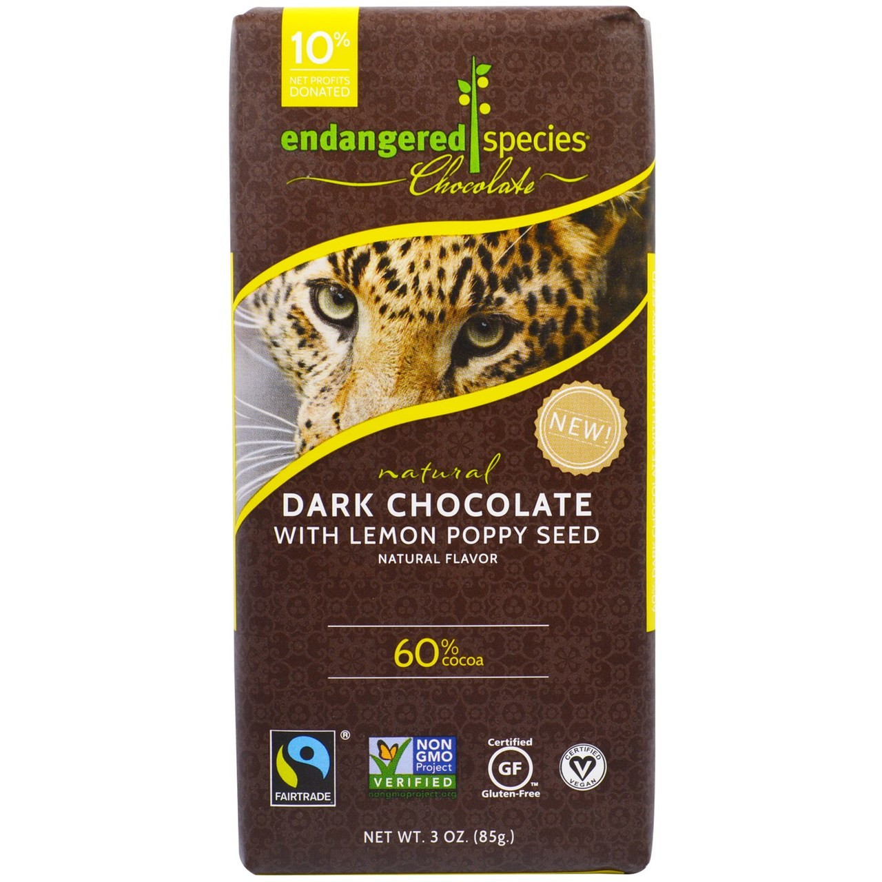 - Endangered Species Chocolate, Dark Chocolate With Lemon Poppy Seed, Natural, 3 oz (85 g)
