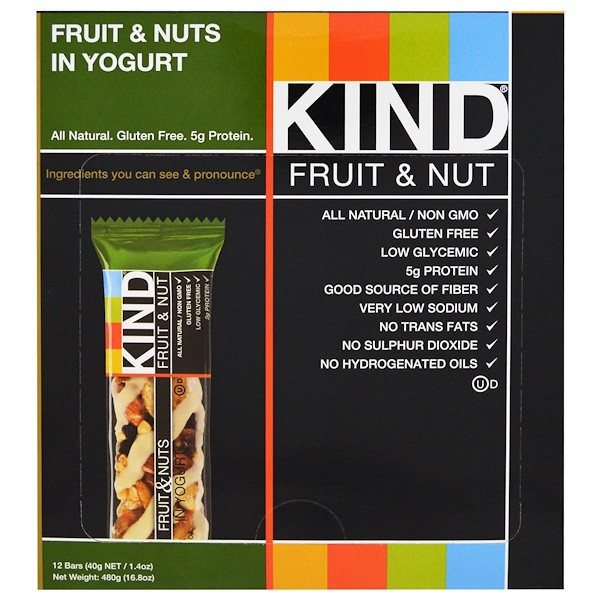 KIND Fruit & Nuts in Yogurt Bar is a simple blend of whole nuts and fruit dipped in yogurt. This satiating and nutrient-dense snack has just the right amount of sweetness from fruit, honey and yogurt. Whether you?re at the gym, at the office, or on-the-go, you can do the KIND thing for your body and your taste buds?.