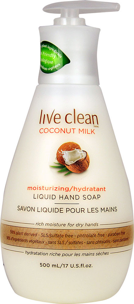 - Live Clean, Moisturizing Liquid Hand Soap, Coconut Milk, 17 fl oz (500 ml)