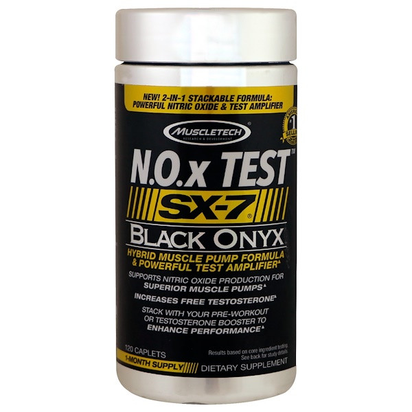 SX-7 researchers have engineered a dual-function formula backed by real human clinical studies on its core ingredients. N.O.x. Test SX-7 Black Onyx is an intense nitric oxide and muscle pump inducing formula with the added benefit of boosting testosterone. Using studied key ingredients, N.O.x. Test SX-7 Black Onyx delivers a unique experience that is completely stackable with other pre-workouts or testosterone boosters.
