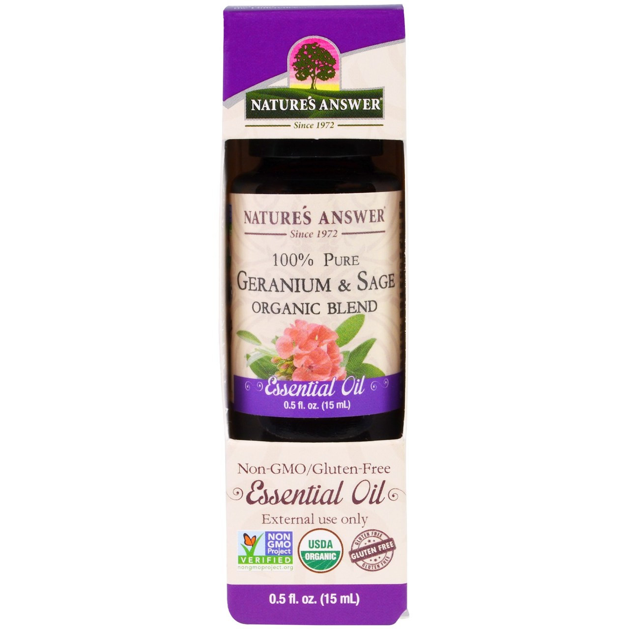 - Natures Answer, 100% Pure, Organic Blend Essential Oil, Geranium & Sage , 0.5 fl oz (15 ml)
