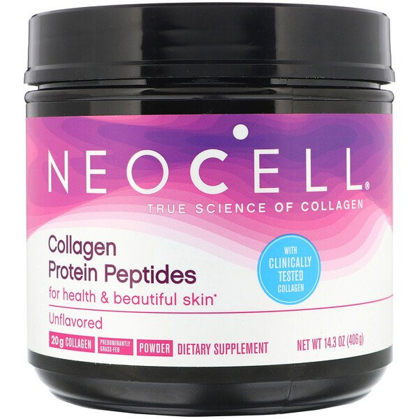 Neocell Collagen Protein Peptides feeds your health and beauty with collagen clinically shown to visibly reduce the appearance of wrinkles. A unique combination of grass-fed collagen, hyaluronic acid, vitamin C and amla fruit extract, NeoCell Collagen Protein Peptides works to nourish your core by promoting healthy collagen synthesis and skin hydration. The result is inner health and beautiful, firm, younger-looking skin. Healthy body, beautiful skin.
