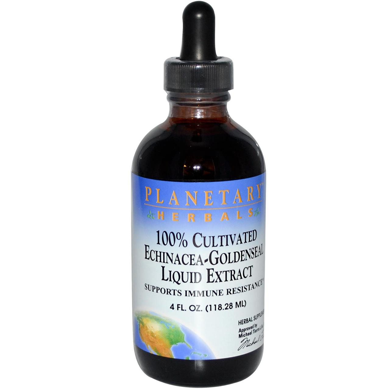 Planetary Herbals Echinacea-Goldenseal Liquid Extract is unique in that it is prepared from 100% cultivated herb material. This insures quality, potency, and renewable supplies of these valuable immune supporting botanicals.