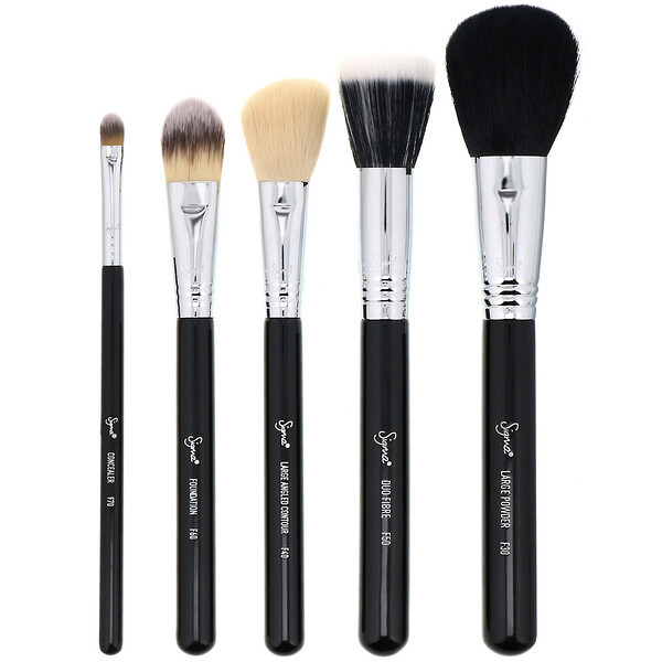 Get 5 classic, professional quality face brushes with the Basic Face Brush Set. A must-have for an all-over makeup application, this set has everything you need for applying foundation, concealer, blush, powder and much more! Each hand-crafted brush features exclusive synthetic antimicrobial fibers that protect your skin.