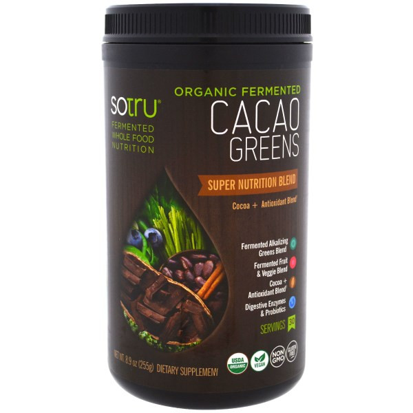 Tru - Superfood Nutrition! CacaoGreens is a powerful synergy of purifying, cleansing and energizing superfoods formulated into an irresistibly decadent and delicious whole-food drink sensation with rich, silky-smooth, dark chocolate taste and texture.