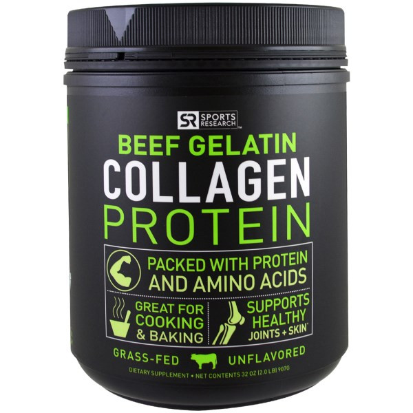 - Sports Research, Beef Gelatin Collagen Protein, Unflavored, 32 oz (907 g)